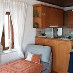 Für Selbstversorger findet man hier eine voll ausgestattete Küche mit einem Kühlschrank und einem Herd. Eine Terrasse lädt die Gäste zum Entspannen ein.